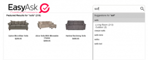 EasyAsk’s AI-Instant Search is a very advanced system that is designed to put the right products in front of the user at the earliest opportunity. Displaying product, search, and category suggestions to a user as soon as they start typing makes the most of a merchandising opportunity that is often missed.